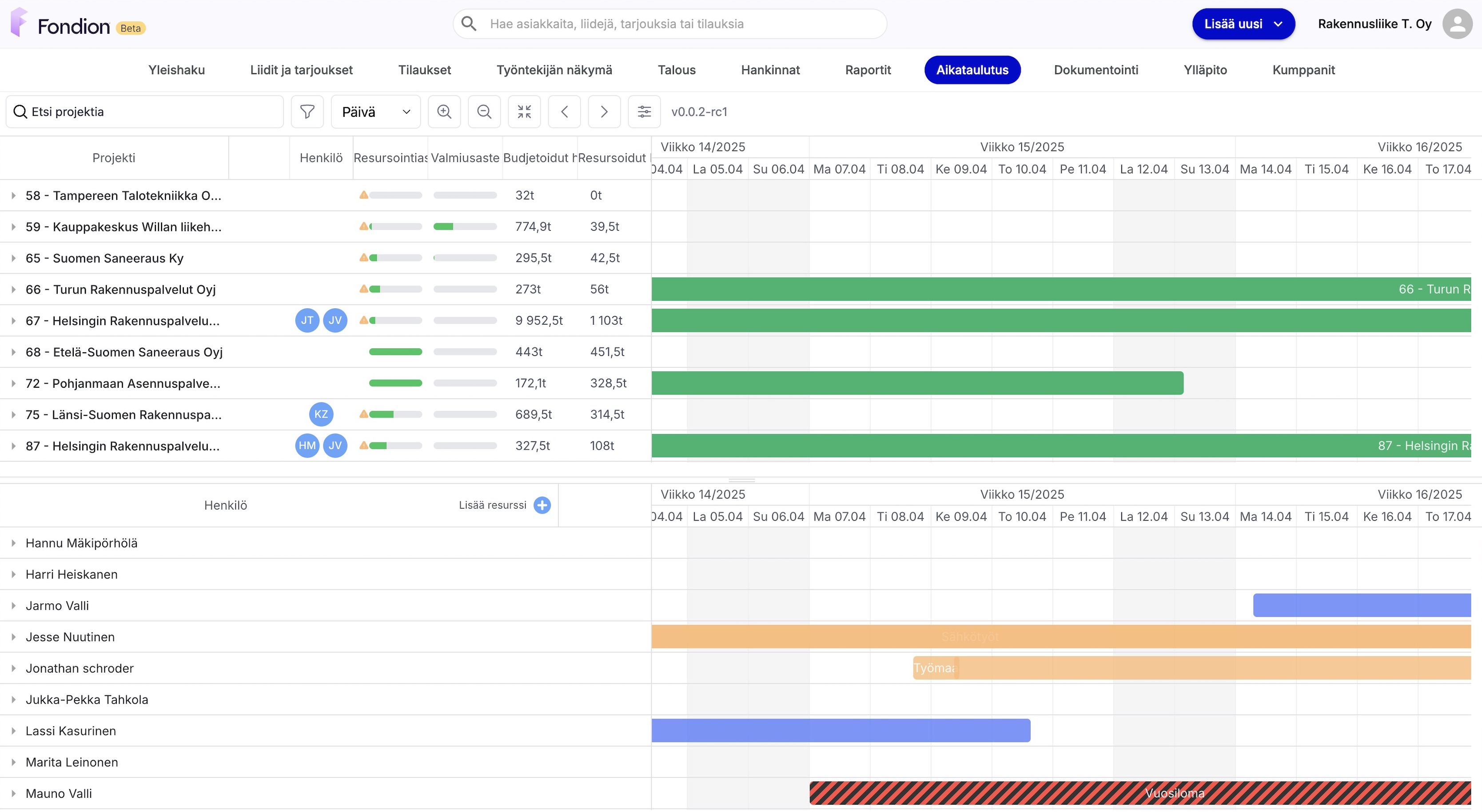 Tilaa aikataulutus- ja resursointi käyttöösi